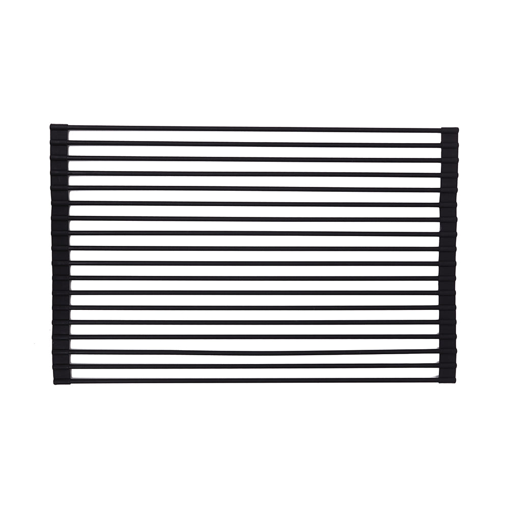 Dry your dishes, kitchen gadgets and vegetables and save space with this multi-purpose over the sink Roll-up Drying Rack. Made from silicone-coated steel, this unique drying rack rolls out to fit neatly over your standard sized kitchen sink so that water drips in to the sink, not all over your counter. The Roll-up Drying Rack is rust resistant, BPA free and rolls-up for easy storage. Multiple uses and dishwasher safe, the Roll-up Drying Rack can be used as a trivet, colander, prep station, and more.